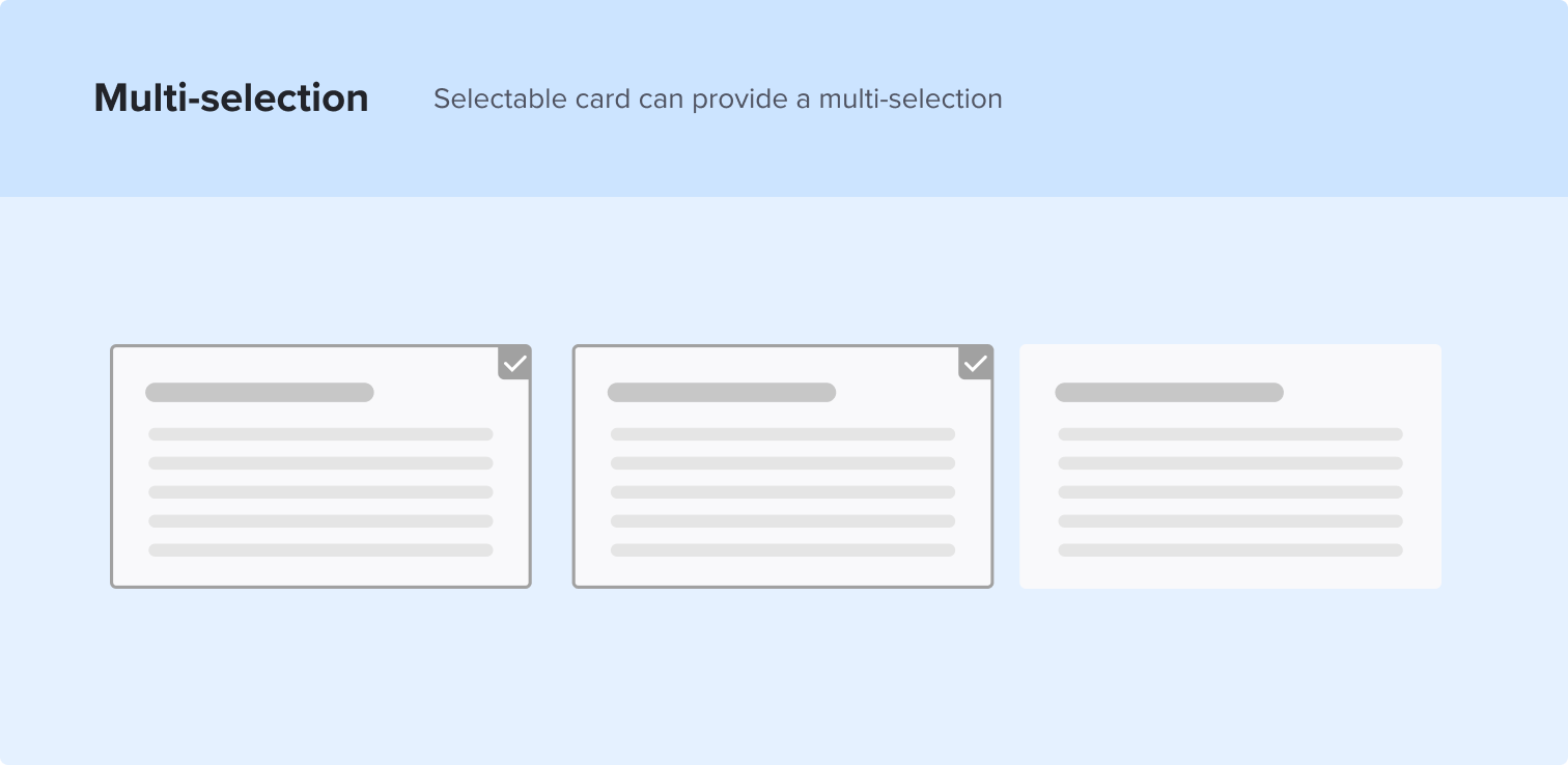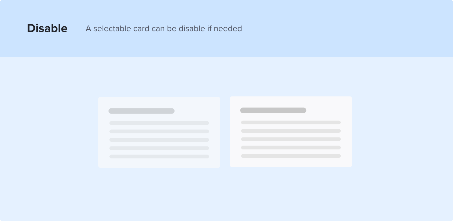 - Selectable card may be pre-selected by default, in which case it is not possible to change its status.